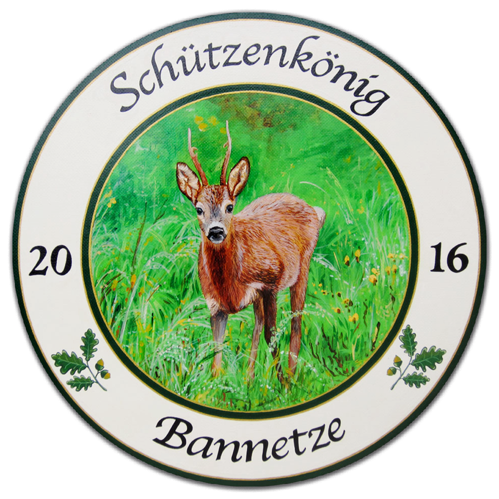 Ein besonderes Format nehmen die Schützenscheiben ein, die mit realistischen Wald- und Wiesenmotiven seit 1994 mein Leben kreuzen. Freunde von Natur- und Tiermotiven kommen hier auf ihre Kosten.